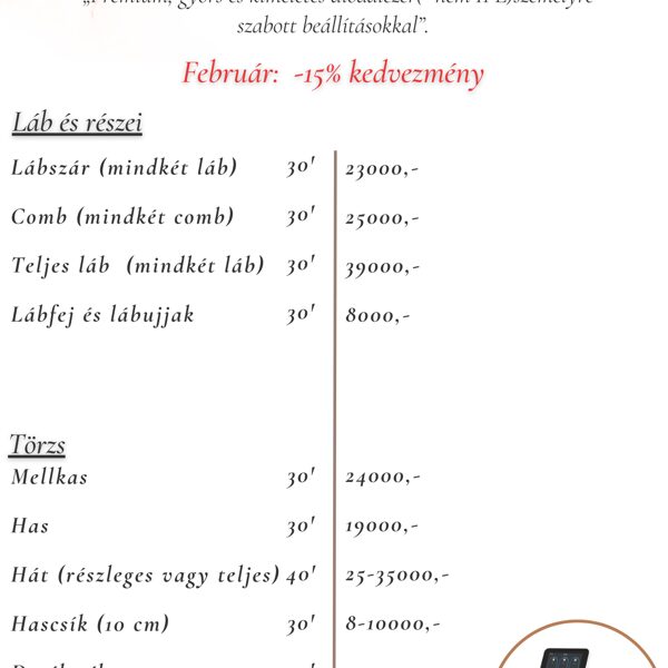 - Rádiófrekvencia (bármely bőrtípusra. Cél: kúrakezelésben a kollagén termelés fokozása)